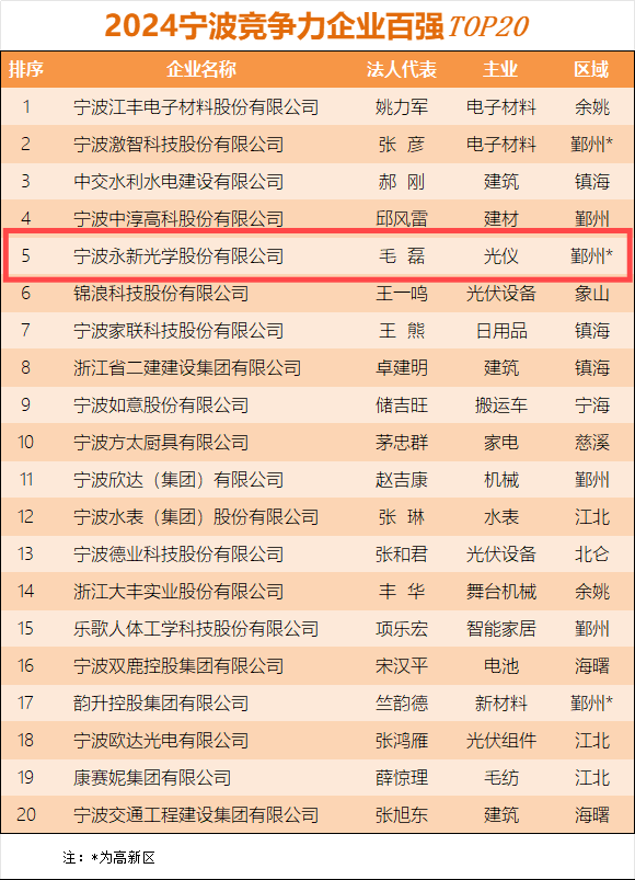 2024寧波競(jìng)爭(zhēng)力企業(yè)百強(qiáng):寧波永新光學(xué)股份有限公司